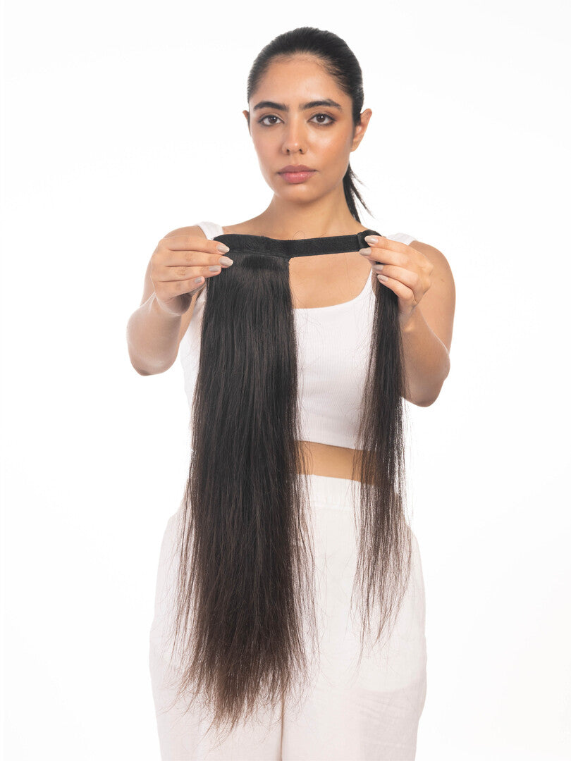Wrap-around Ponytail - Add glam to your hair with wrap-around pony hair extensions. They give a more voluminous and heavier feel to your hair. You can wrap the secure band around your pony to fix the wrap-around ponytail. These extensions add volume and give a luxurious feel to your pony. It becomes a statement of your elegance, giving a practical and neat hairstyle fit for various occasions. The size of the wrap-around ponytail ranges from 16 to 24 inches.