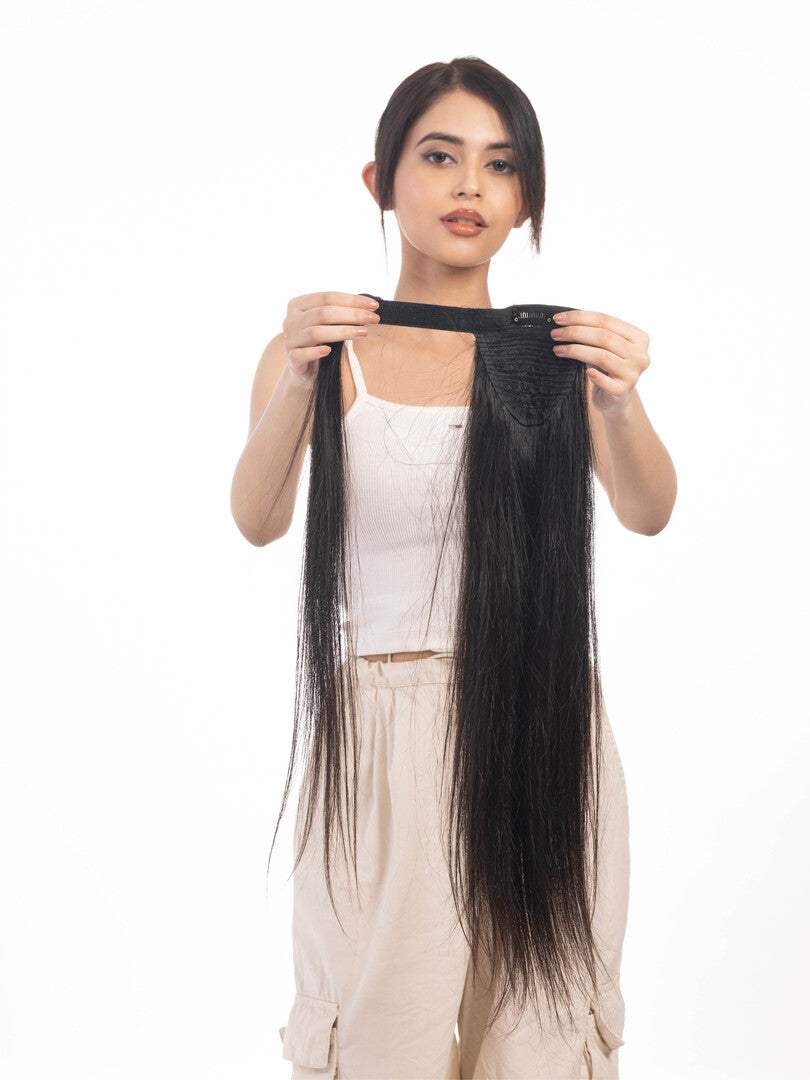 Wrap-around Ponytail - Add glam to your hair with wrap-around pony hair extensions. They give a more voluminous and heavier feel to your hair. You can wrap the secure band around your pony to fix the wrap-around ponytail. These extensions add volume and give a luxurious feel to your pony. It becomes a statement of your elegance, giving a practical and neat hairstyle fit for various occasions. The size of the wrap-around ponytail ranges from 16 to 24 inches.