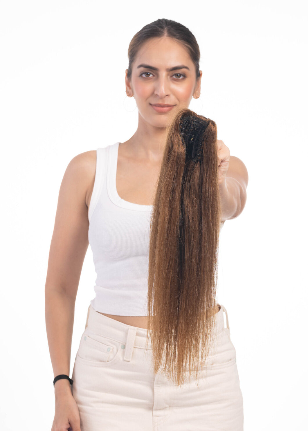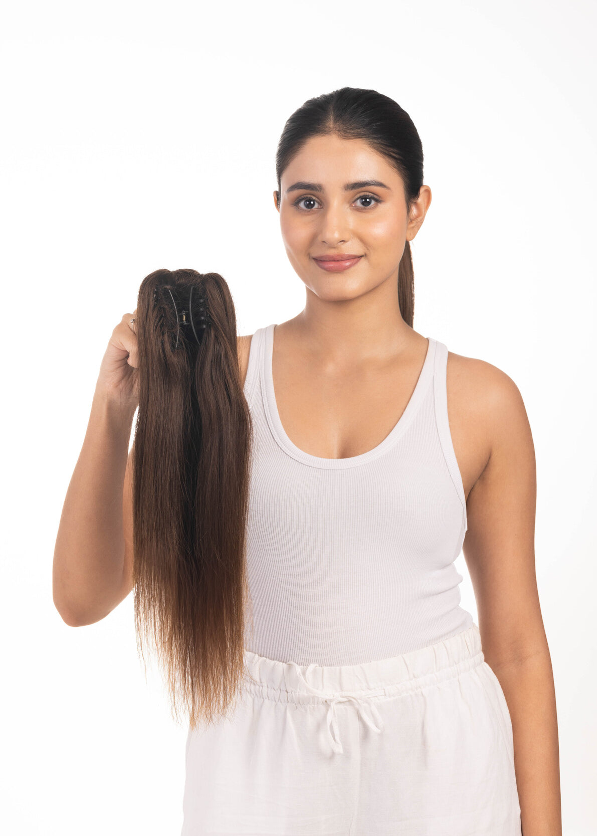For women, ponytails are the most practical look that serves both professionalism and a positive demeanour. It also adds elegance when paired with fancy attire. Make ponytails hassle-free with a simple clutcher and wrap-around structure. Add instant volume and length to your hair with our pony extensions.
