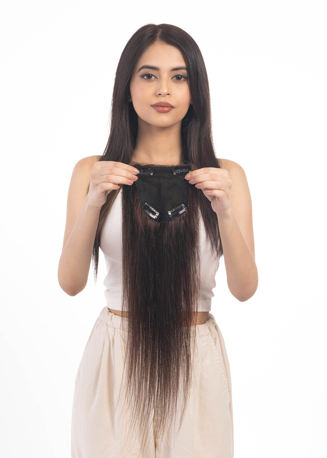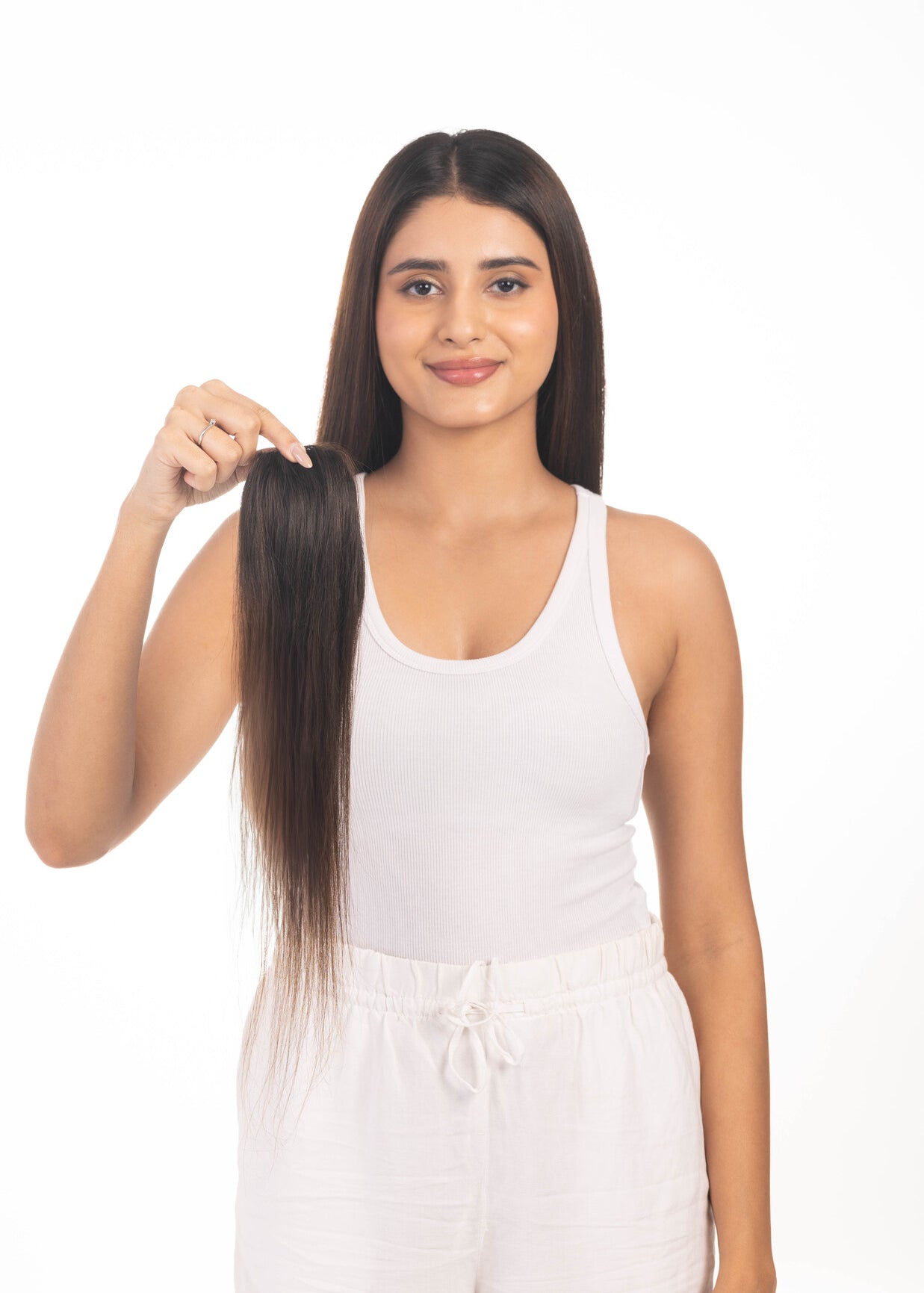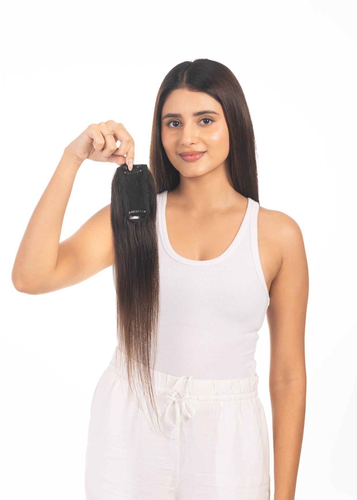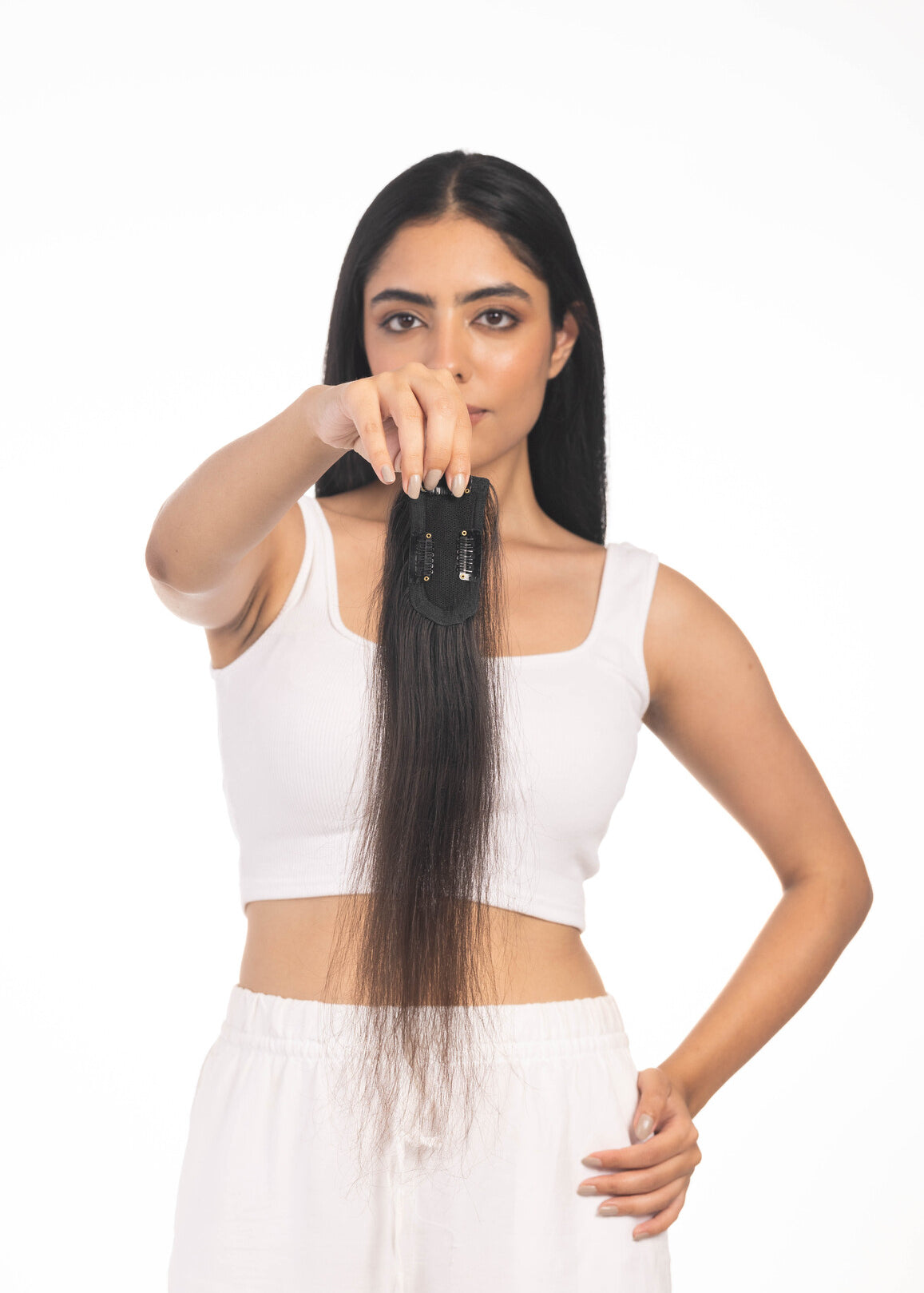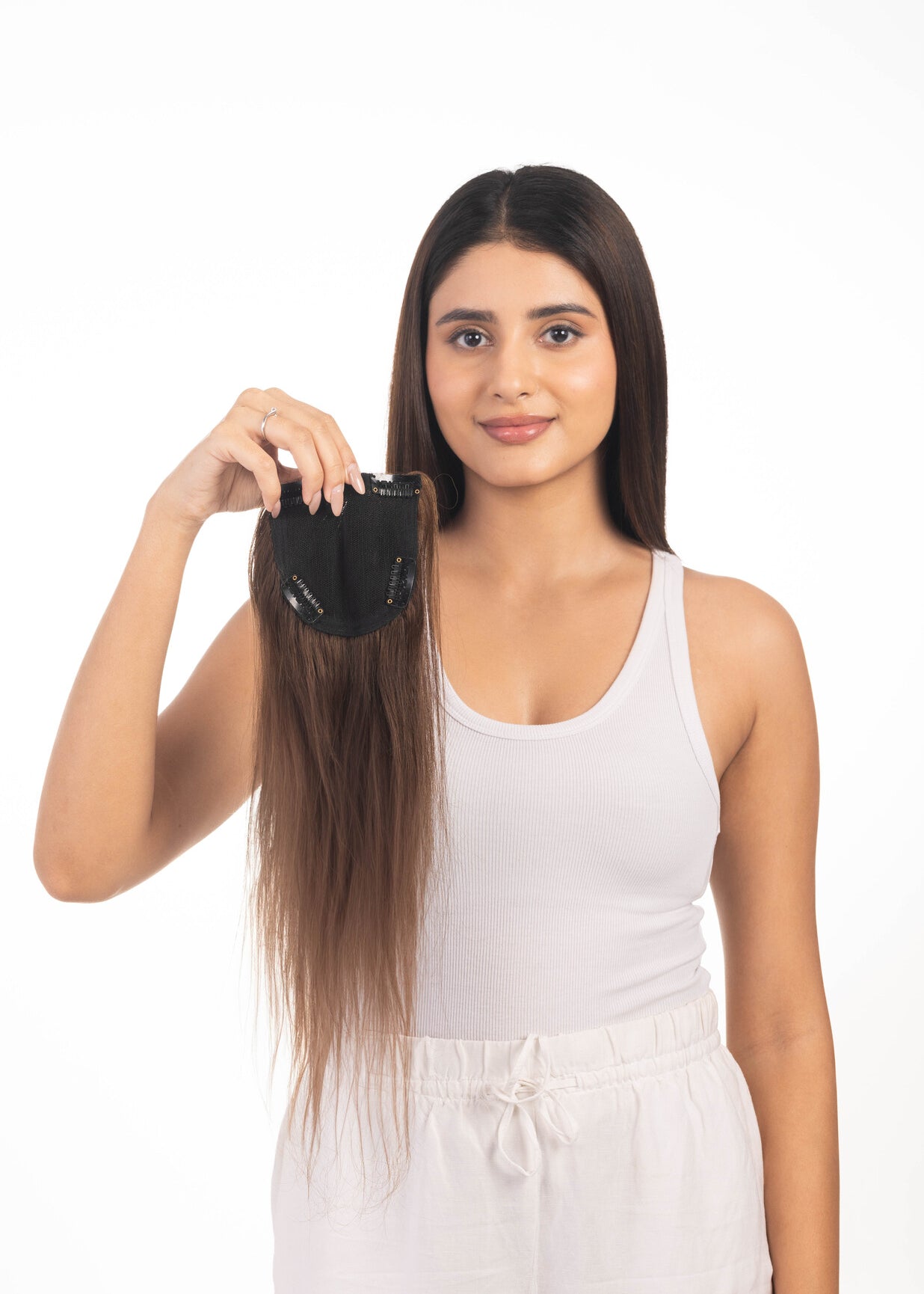 Hair toppers for women are a lifesaving solution, especially if they are facing issues like thinning hair, receding hairline and bald spots. HairJoy’s hair toppers are a quick fix to all your hair problems. They add instant thickness to your balding spots and receding hairline. Hair toppers come with a secure clip-in attachment providing sturdy support.