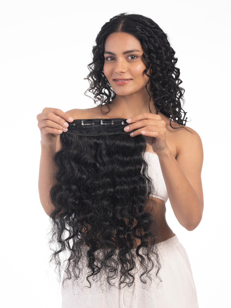 HairJoy’s 4-Clip Curly Volumizer gives you voluminous, curly hair effortlessly. Designed for maximum impact, this volumizer clips in securely and blends seamlessly with your natural curls, adding instant body and thickness. Perfect for transforming your look for special events or elevating your everyday style, the 4-Clip Curly Volumizer is made from 100% Remy Human Hair to ensure a natural appearance and lightweight comfort. Enjoy fuller, more glamorous curly hair in seconds with HairJoy’s easy-to-use solution.