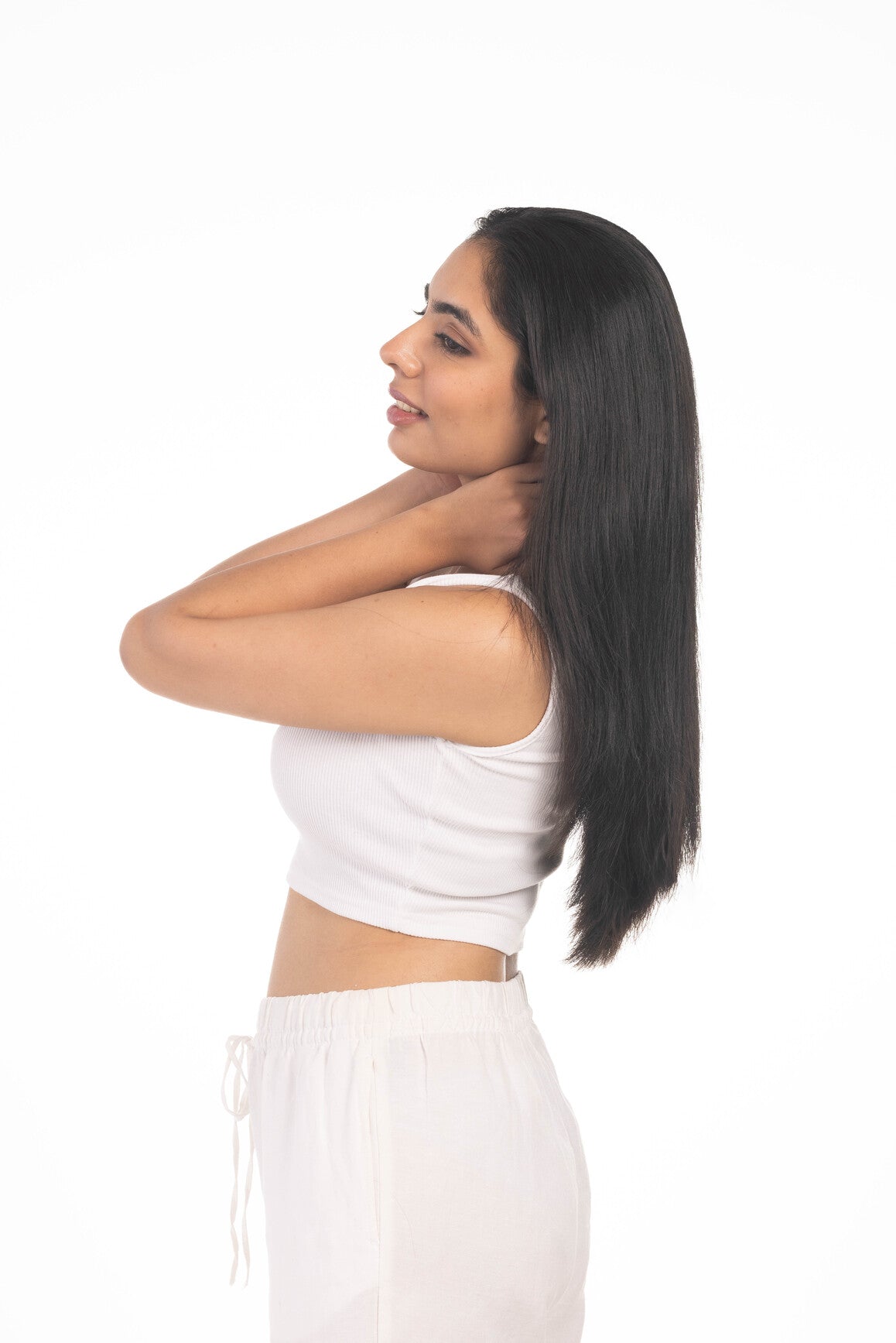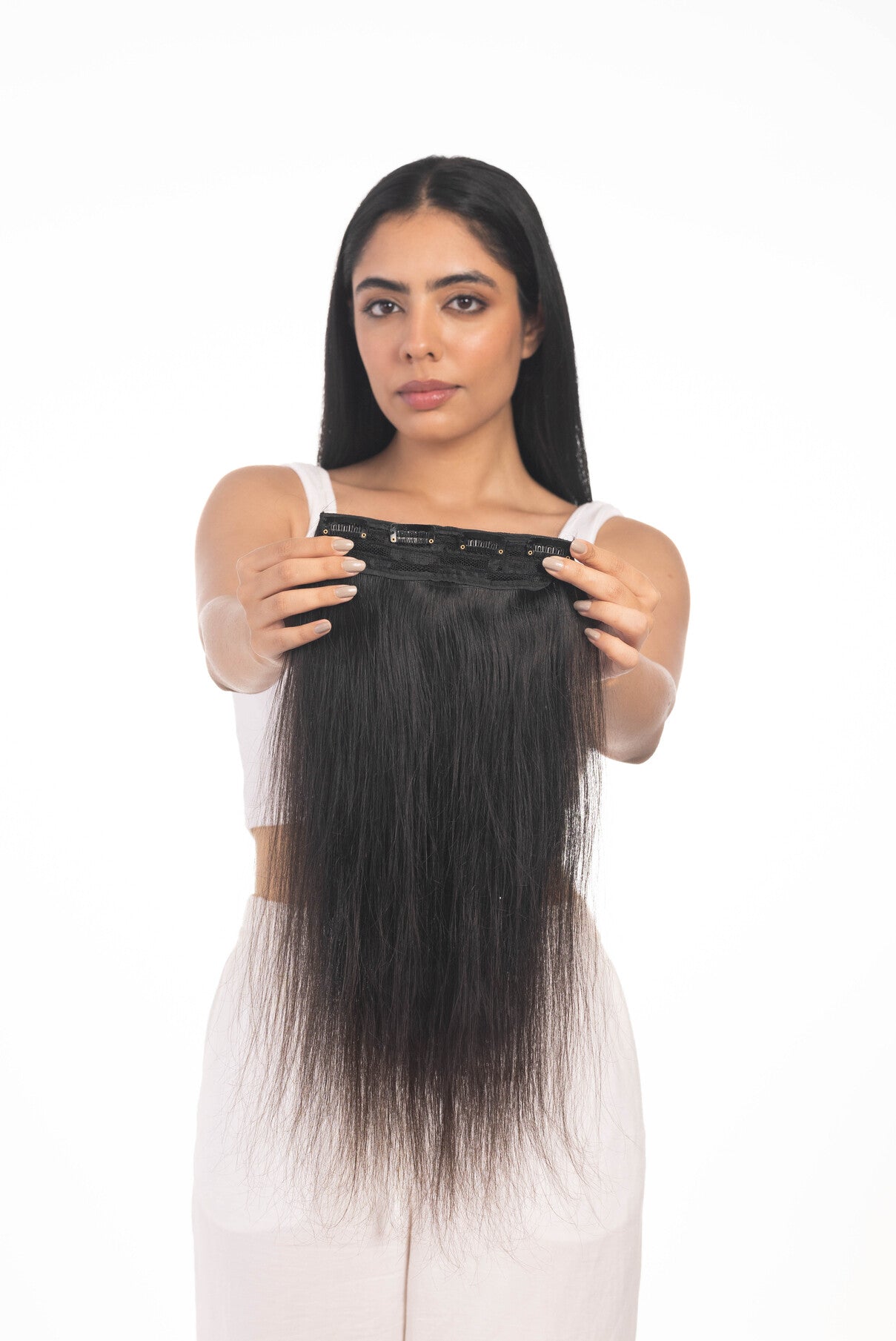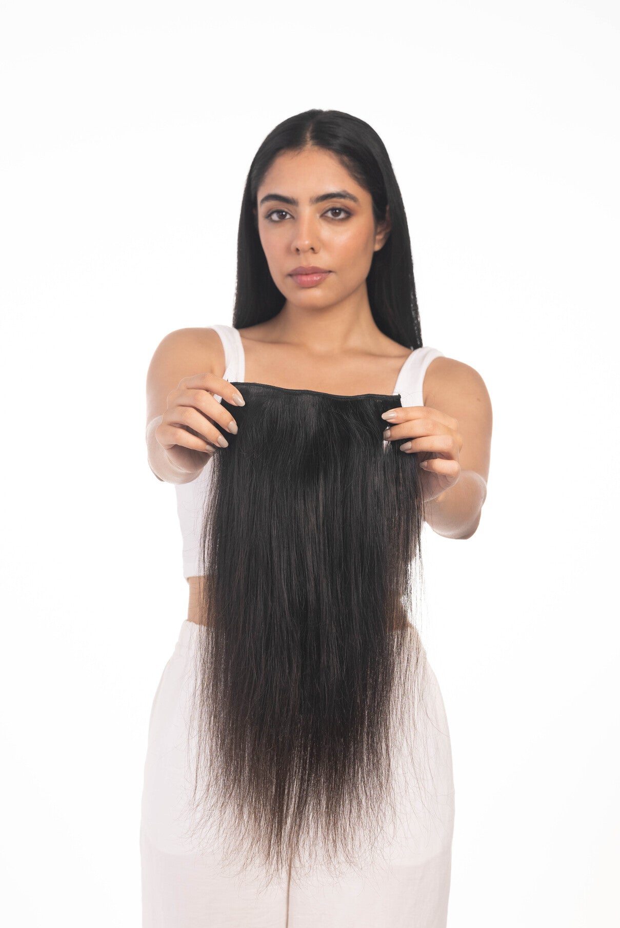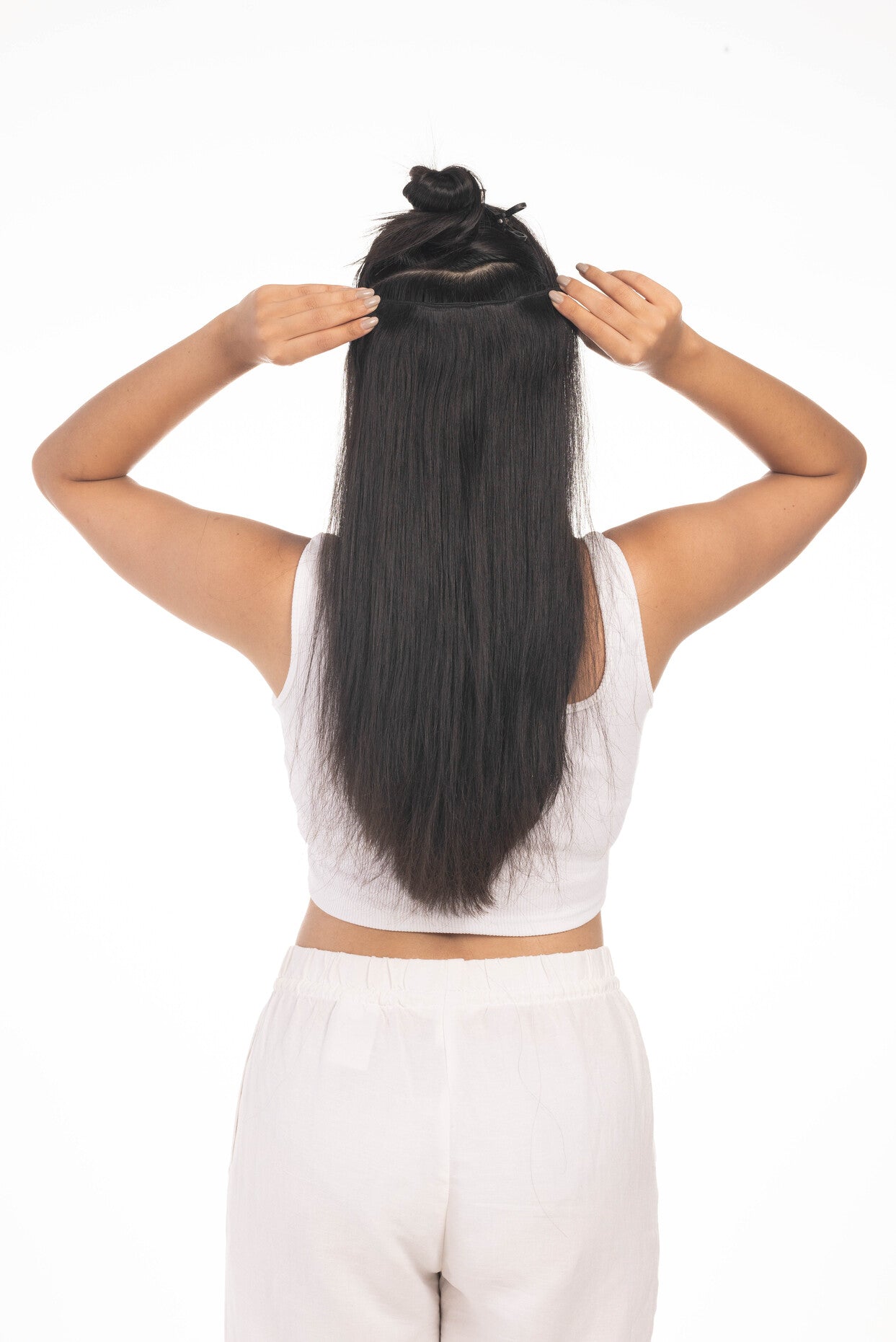 HairJoy’s 4-Clip Volumizer gives voluminous hair Effortlessly. Designed for maximum impact, this volumizer clips in securely and blends seamlessly with your natural hair, adding instant body and thickness. Perfect for transforming your look for special events or simply boosting your everyday style, our 4-Clip Volumizer is made from 100% Remy Human Hair that ensure a natural appearance and lightweight comfort. Enjoy fuller, more glamorous hair in seconds with HairJoy’s easy-to-use solution.