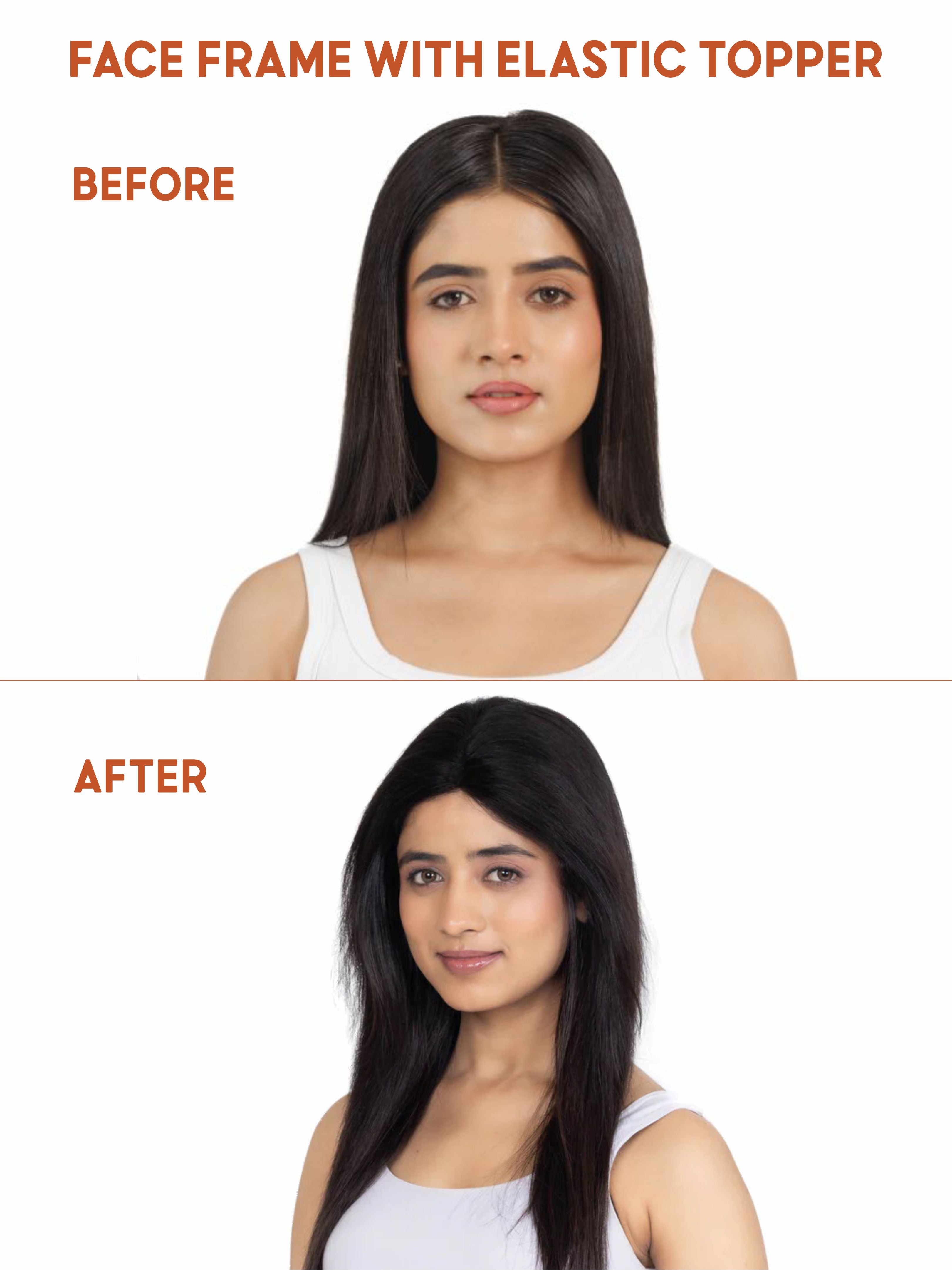 Inspired by HairJoy’s original Face Frame Topper, this upgraded version is bigger, clipless, and designed for overall front coverage. The elastic base allows effortless placement—no clips, no pressure, just a natural blend.