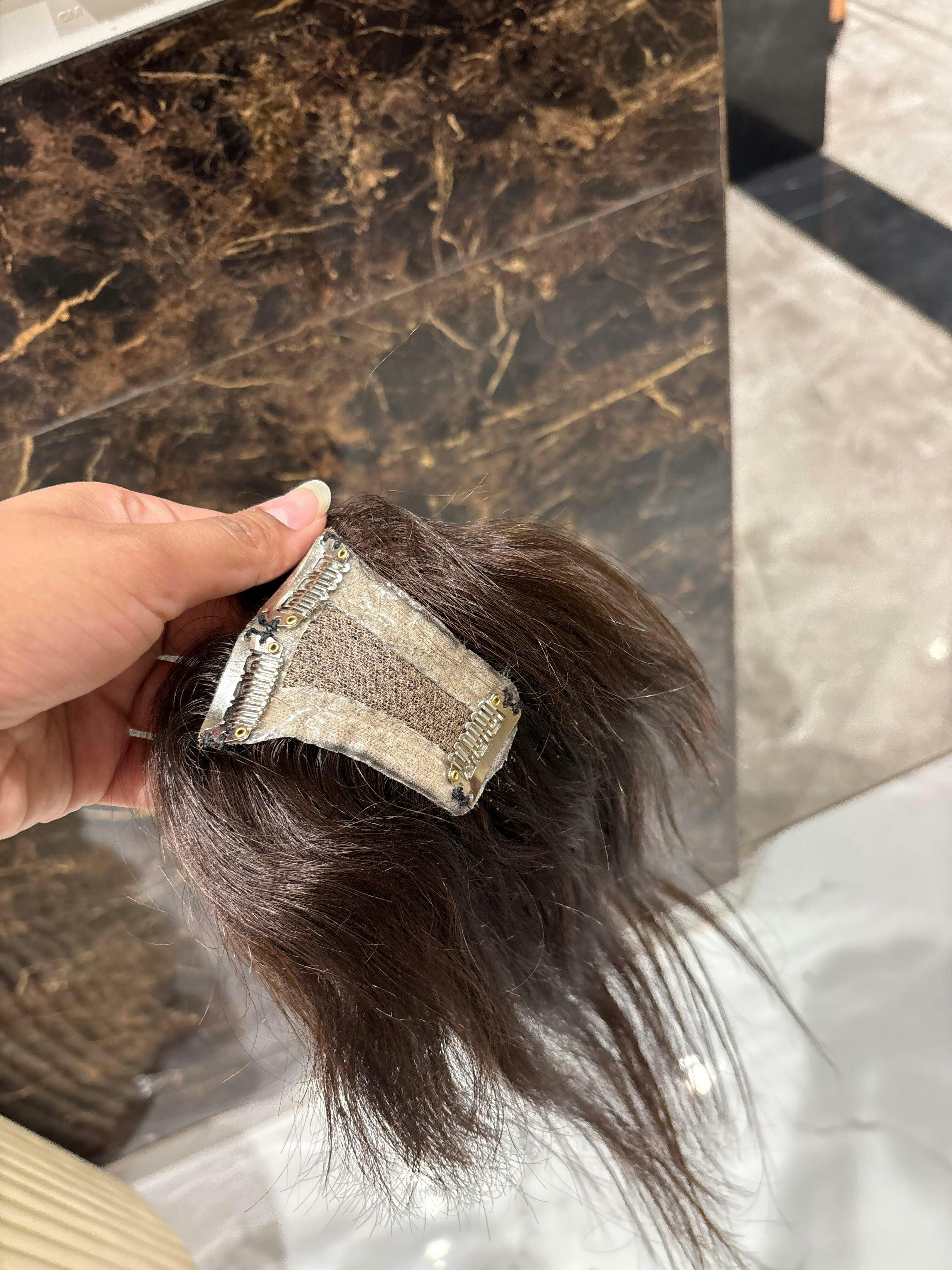 Material: 100% Remy Human Hair — naturally blends with all Indian hair textures. Base: Softline Cream Lace (Y-shape, 1.5” x 3”) for front and crown coverage. Length: 9” front fringe + 12” back hair Density: 20gms (standard), customizable on request Clips: Premium rust-resistant iron clips — secure, gentle, and reusable Usage: Ideal for daily wear, scalp coverage, and styling flexibility