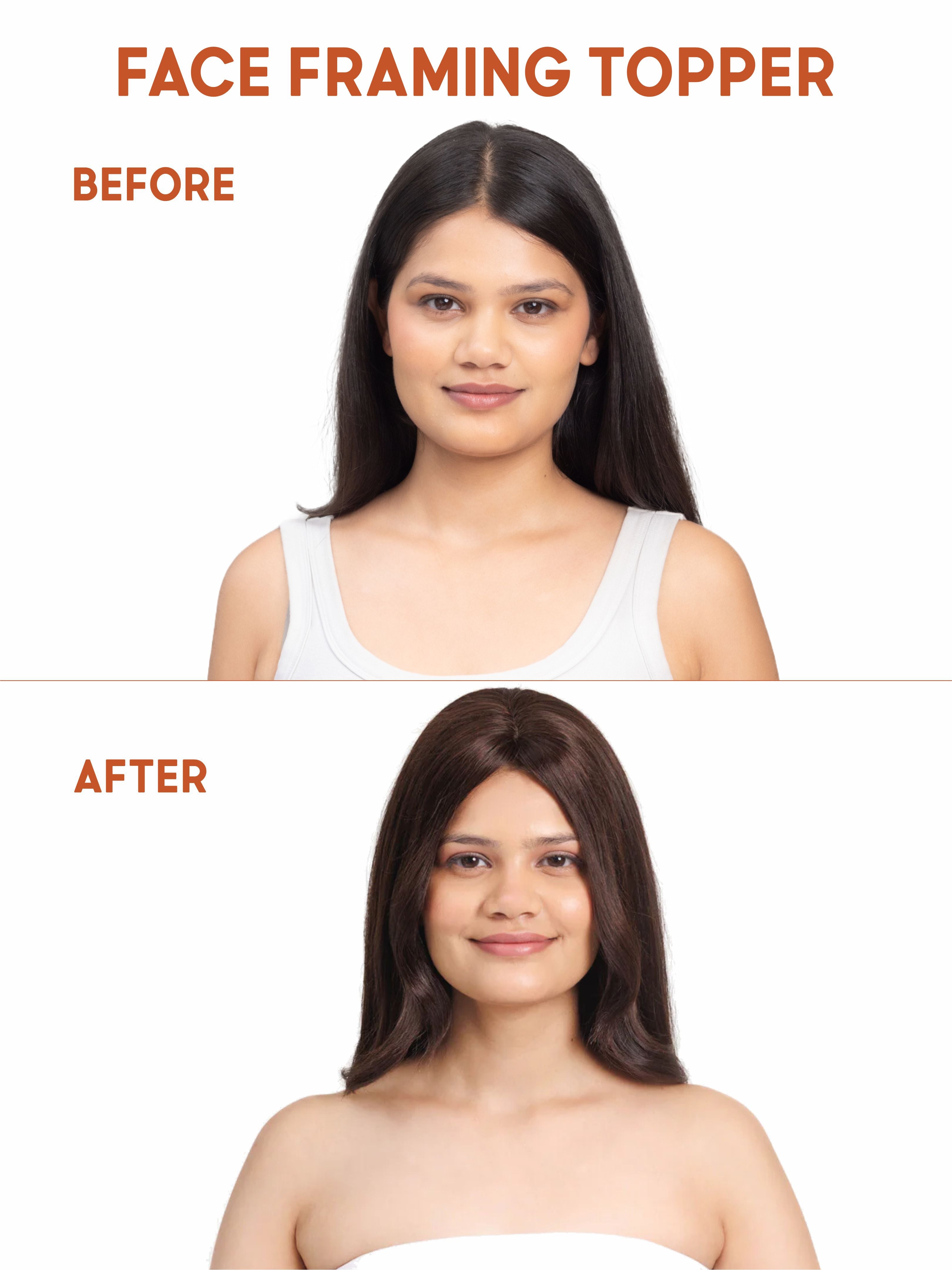 HairJoy’s Face Framing Topper is the perfect fusion of our two bestsellers — the Front Fringe and our signature Lace Topper collection. Designed for women seeking both scalp coverage and a flattering fringe, this piece elevates your look with effortless grace.