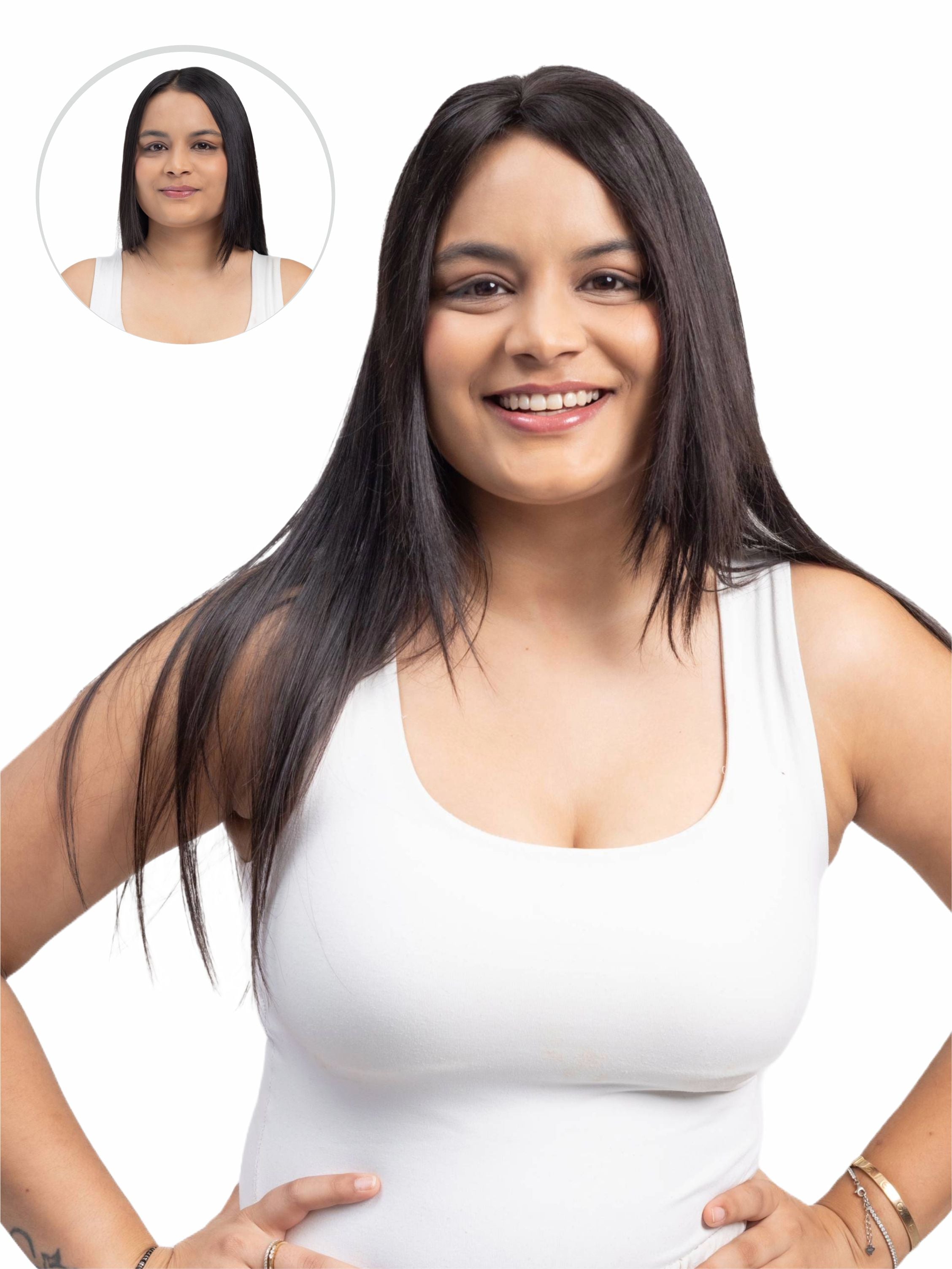 Crafted with layered front fringes that softly contour your face, it enhances your natural features while maintaining that signature HairJoy flow. The thoughtfully extended design now includes additional strands at the back — ensuring that your crown and nape blend effortlessly, giving a fuller, more polished appearance from every angle.