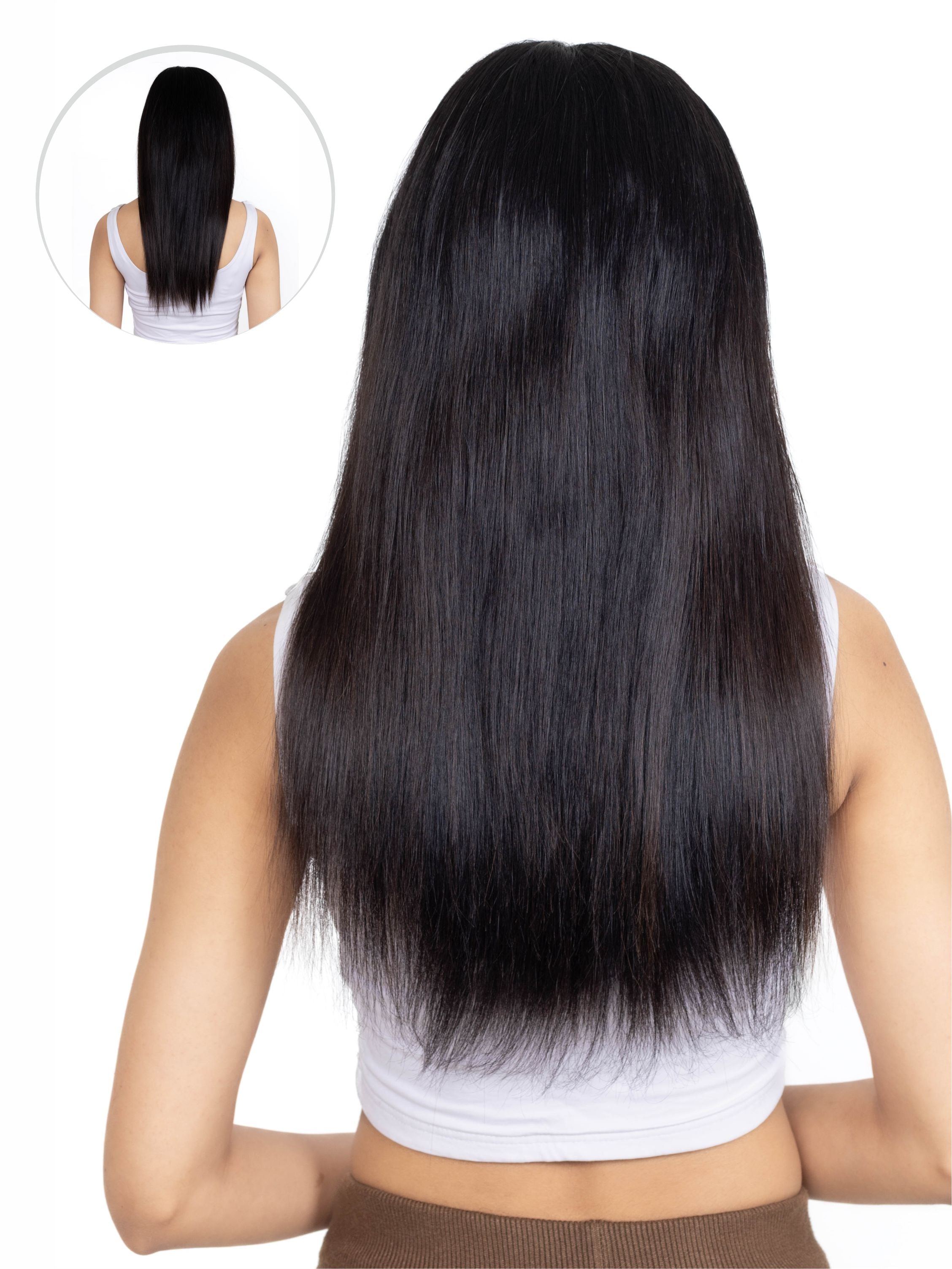Made using premium South Indian hair, it holds styling beautifully while retaining shine and healthy movement. Lightweight yet dense, the halo provides natural volume from root to tip.