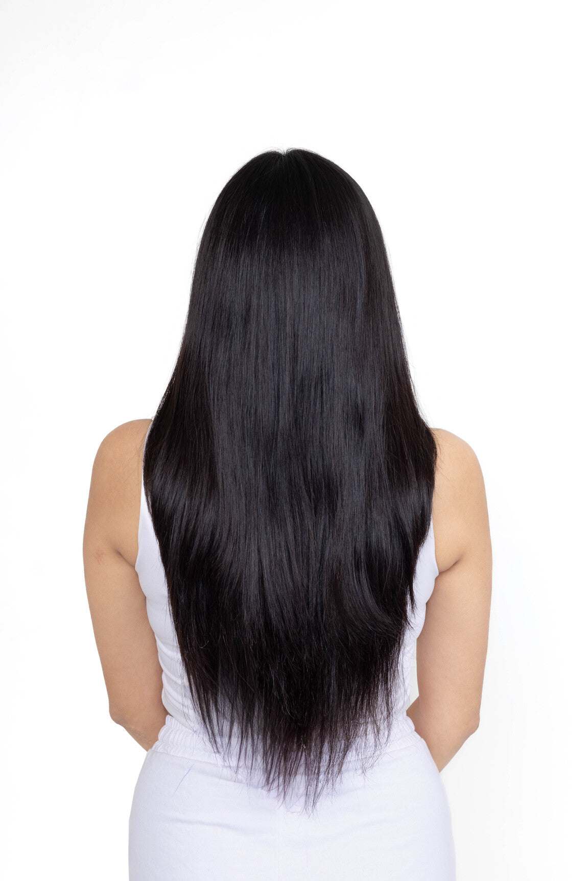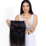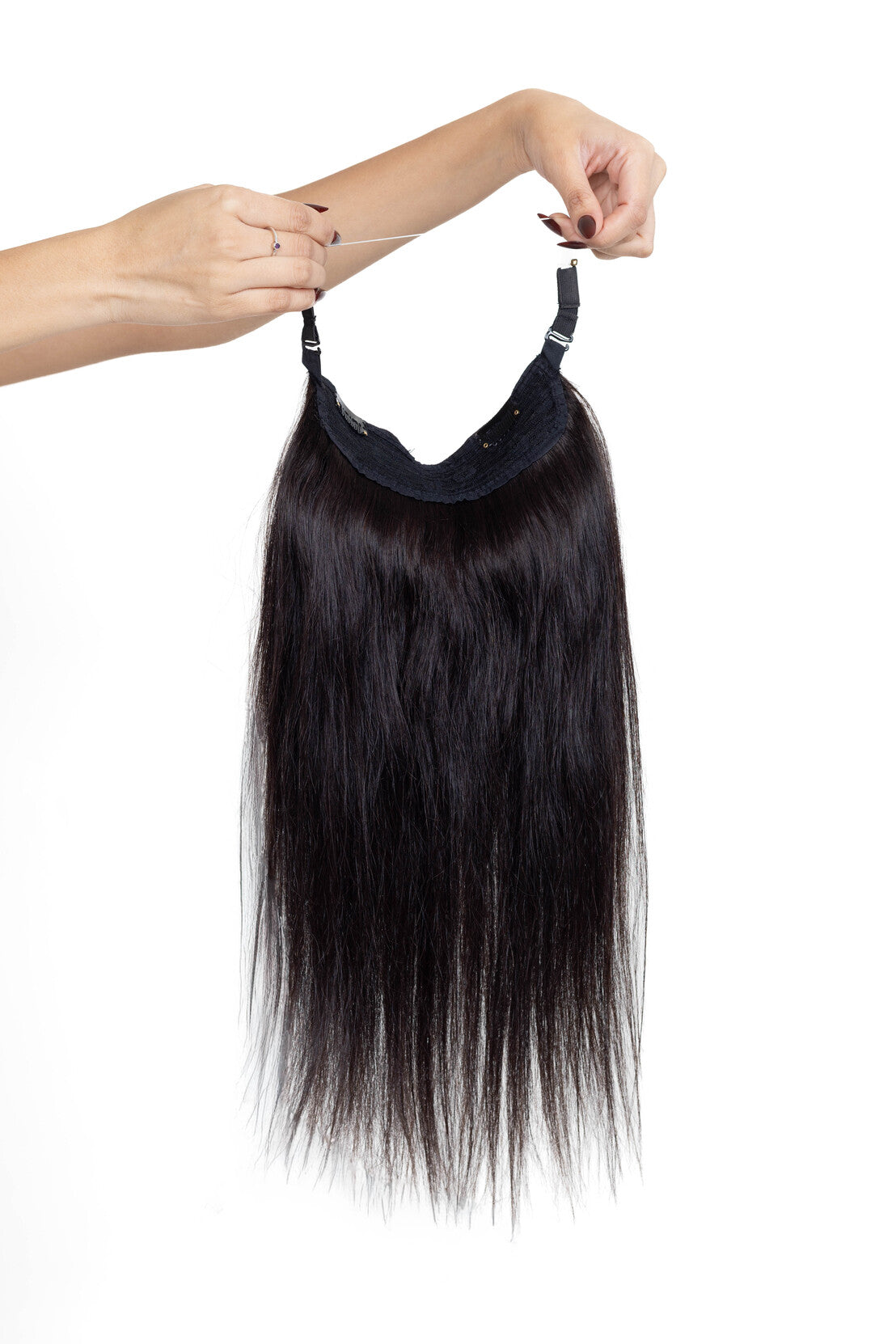 The Halo Extension delivers instant length and volume using an invisible adjustable band—no clips, no glue, no effort. It sits comfortably around your crown and blends flawlessly with your natural hair.