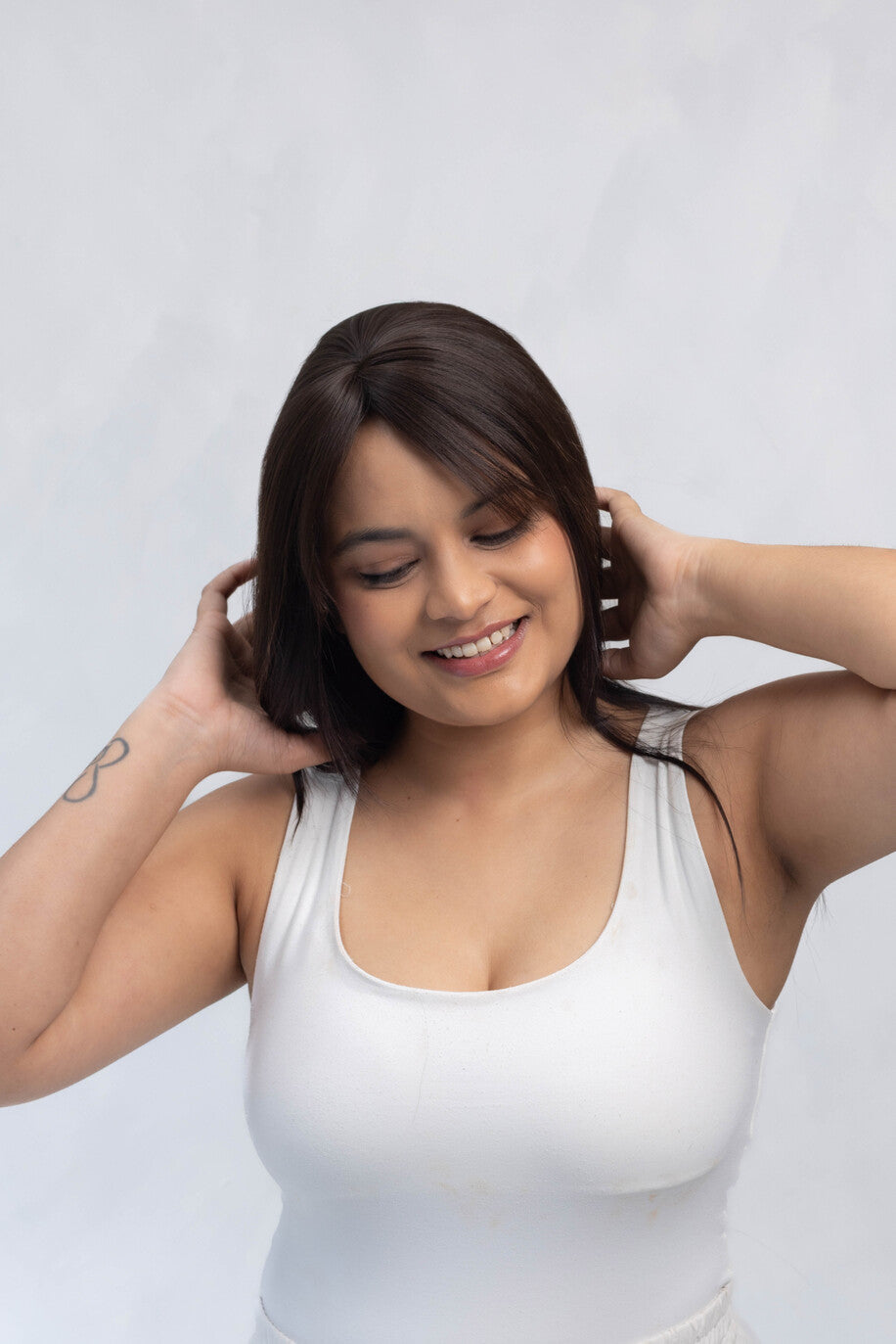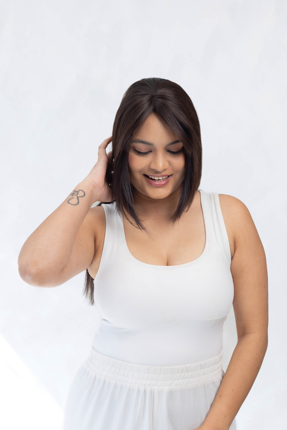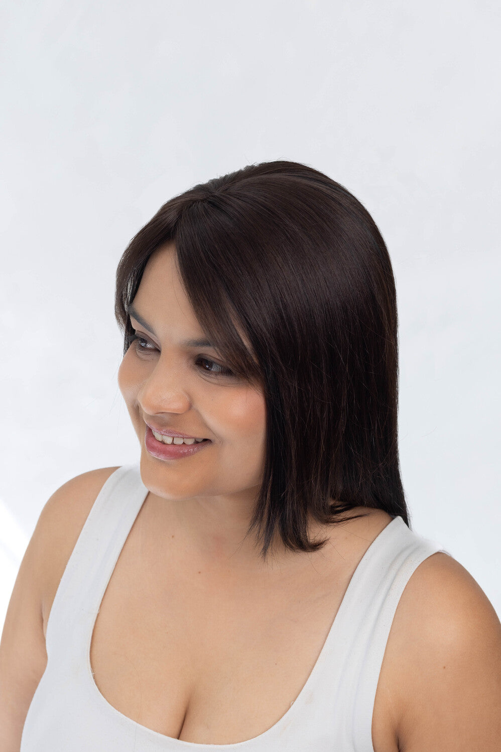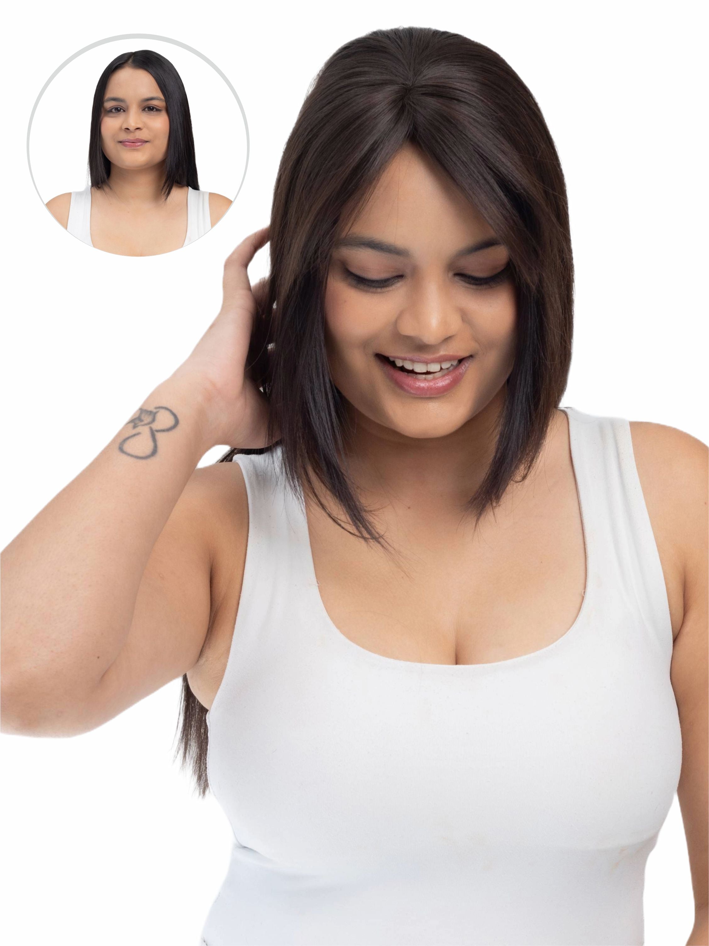 Feather-light at just 25 grams, the Miny Topper blends seamlessly with your natural hair, allowing you to move freely, style easily, and wear it all day in comfort — perfect for your daily routine, workdays, or casual outings.