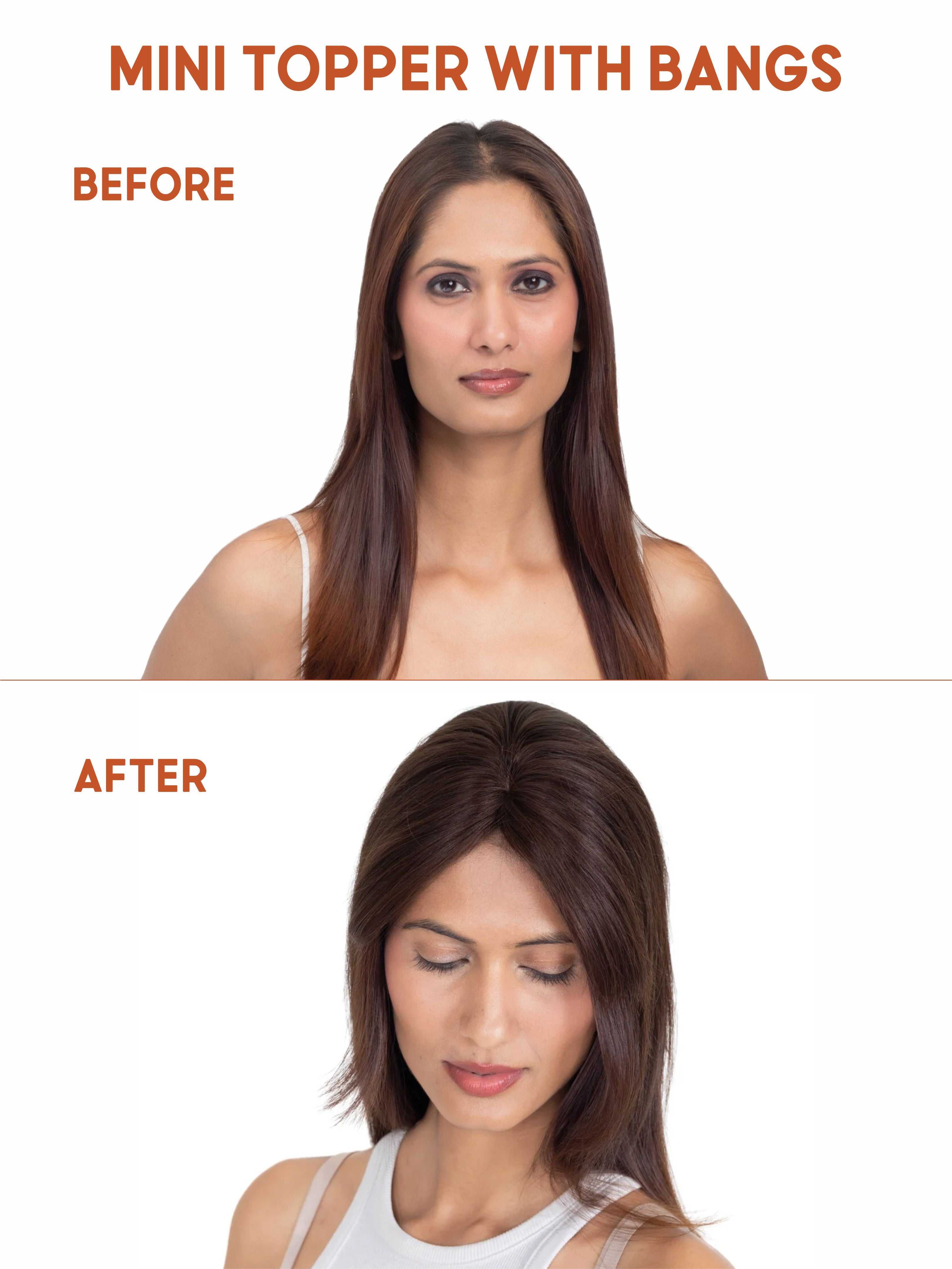 Perfect for women experiencing early thinning near the parting or those seeking a soft, face-framing fringe without committing to a haircut. The Mini Topper adds subtle coverage and dimension while staying feather-light.