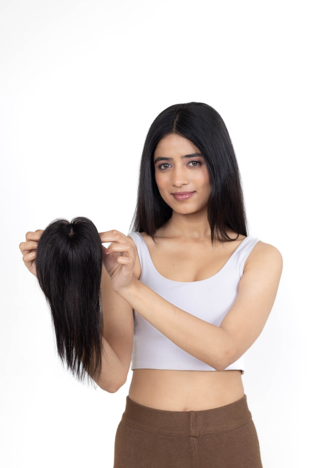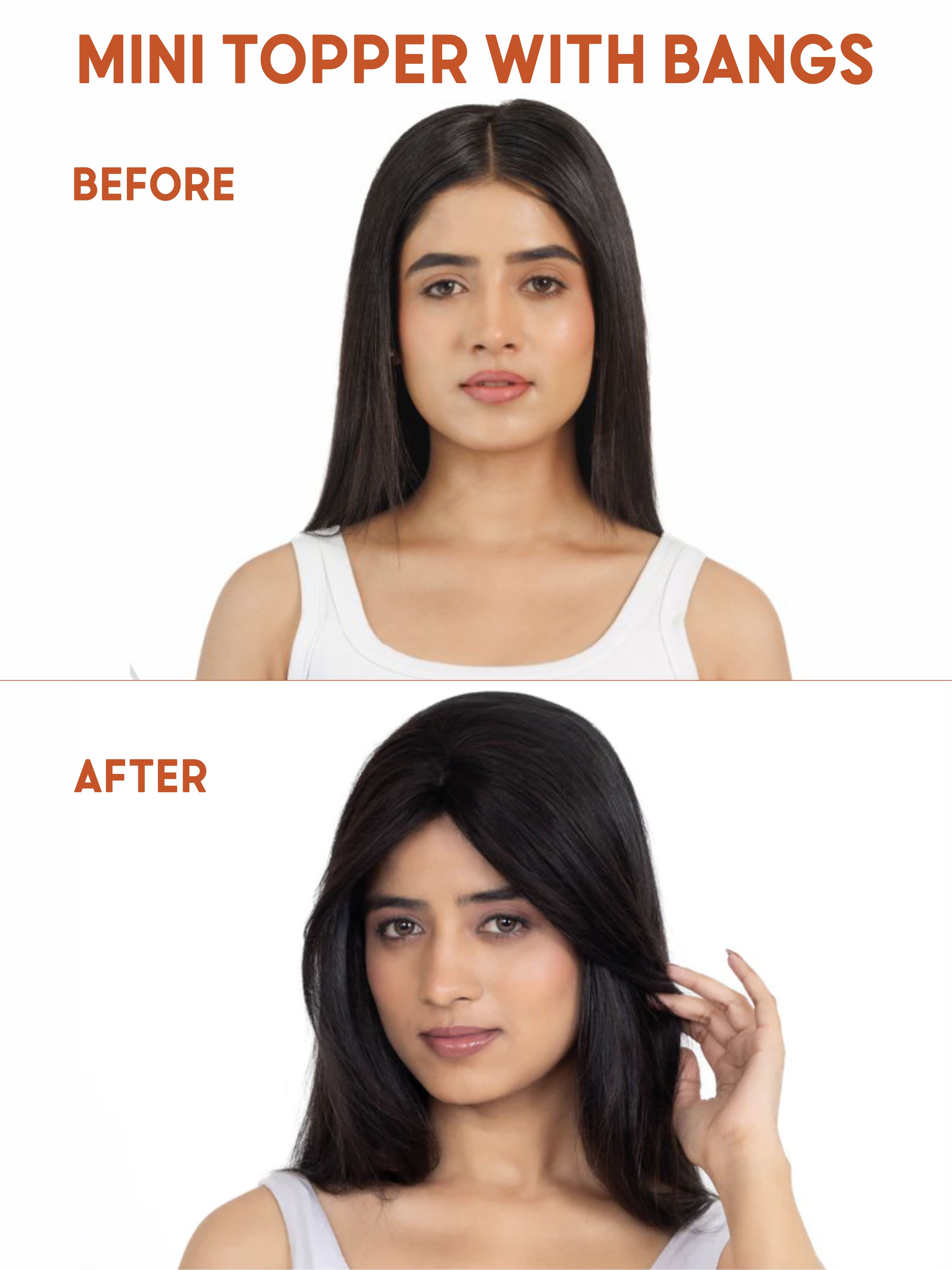 Perfect for women experiencing early thinning near the parting or those seeking a soft, face-framing fringe without committing to a haircut. The Mini Topper adds subtle coverage and dimension while staying feather-light.