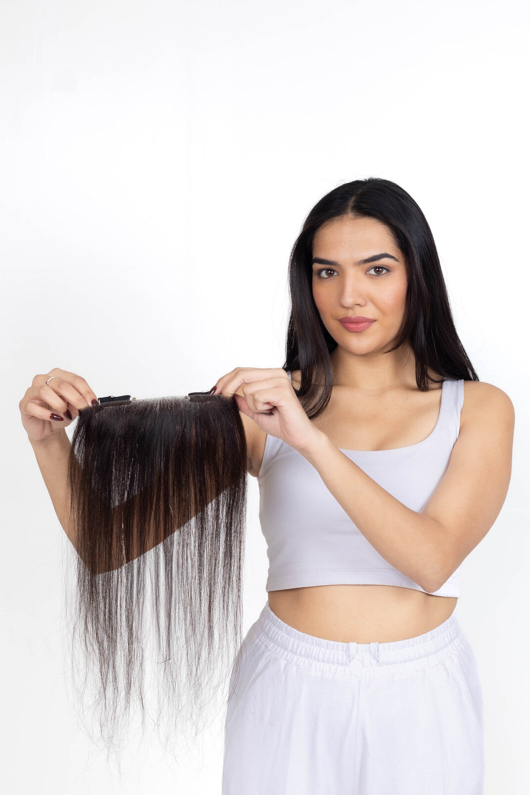 Designed for women experiencing receding hairlines, temple thinning, or uneven front density, this band restores fullness exactly where needed. Lightweight strands fall seamlessly into your natural hair.