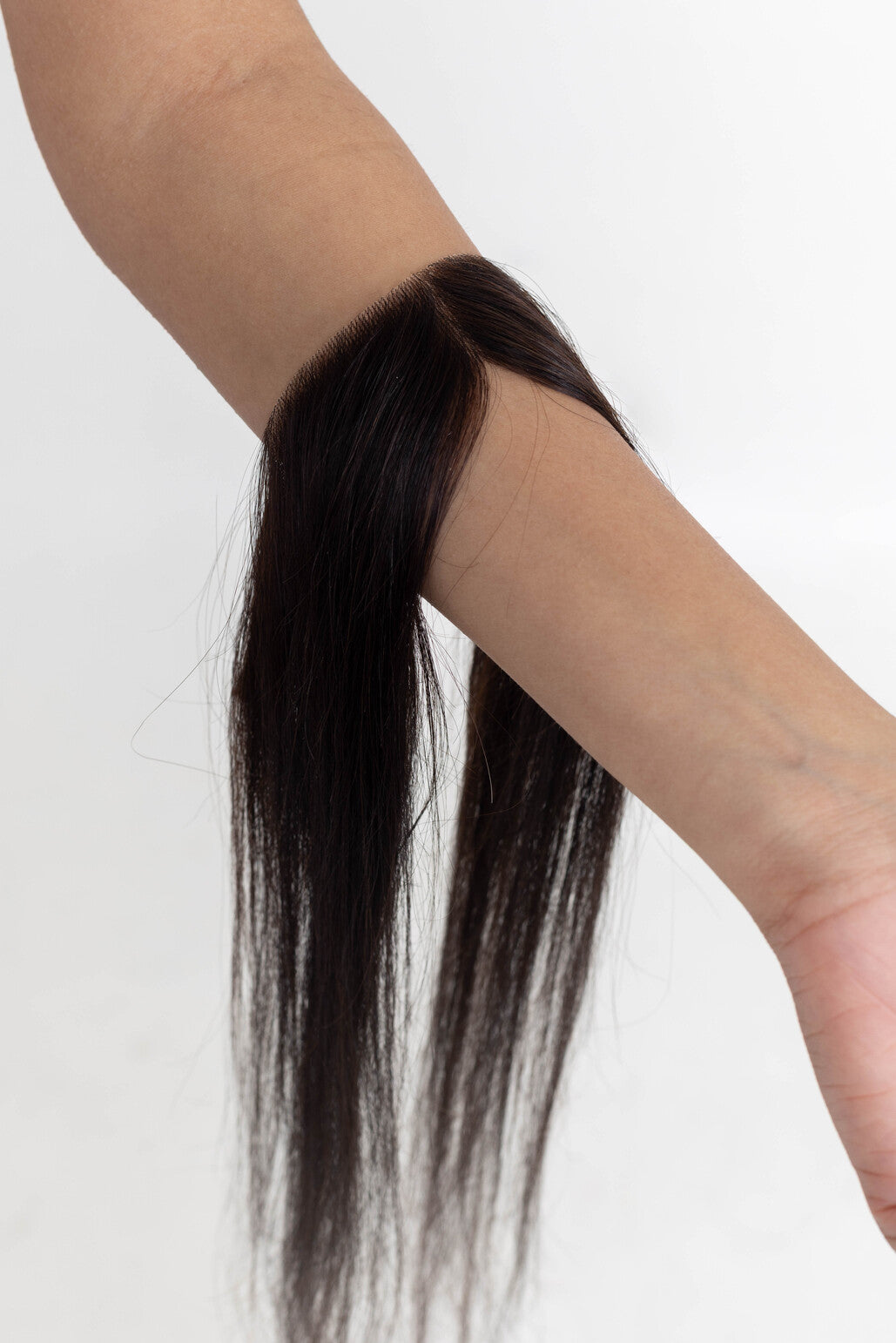 Washing Frequency: Wash your product every 7-14 wears, depending on your activity level and product buildup. Pre-washing: Gently detangle the hair with a wide-tooth comb or wig brush. Method: Fill a sink or basin with lukewarm water and add a small amount of sulfate-free shampoo. Submerge the product, avoiding the base, and gently massage the hair to remove dirt and oil. Rinse thoroughly with clean water.