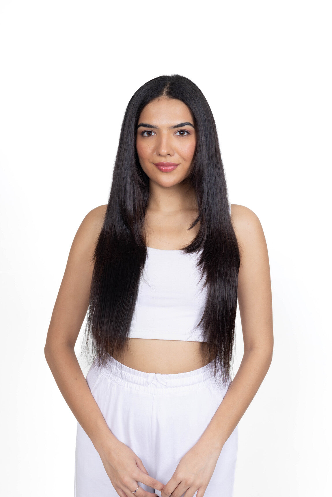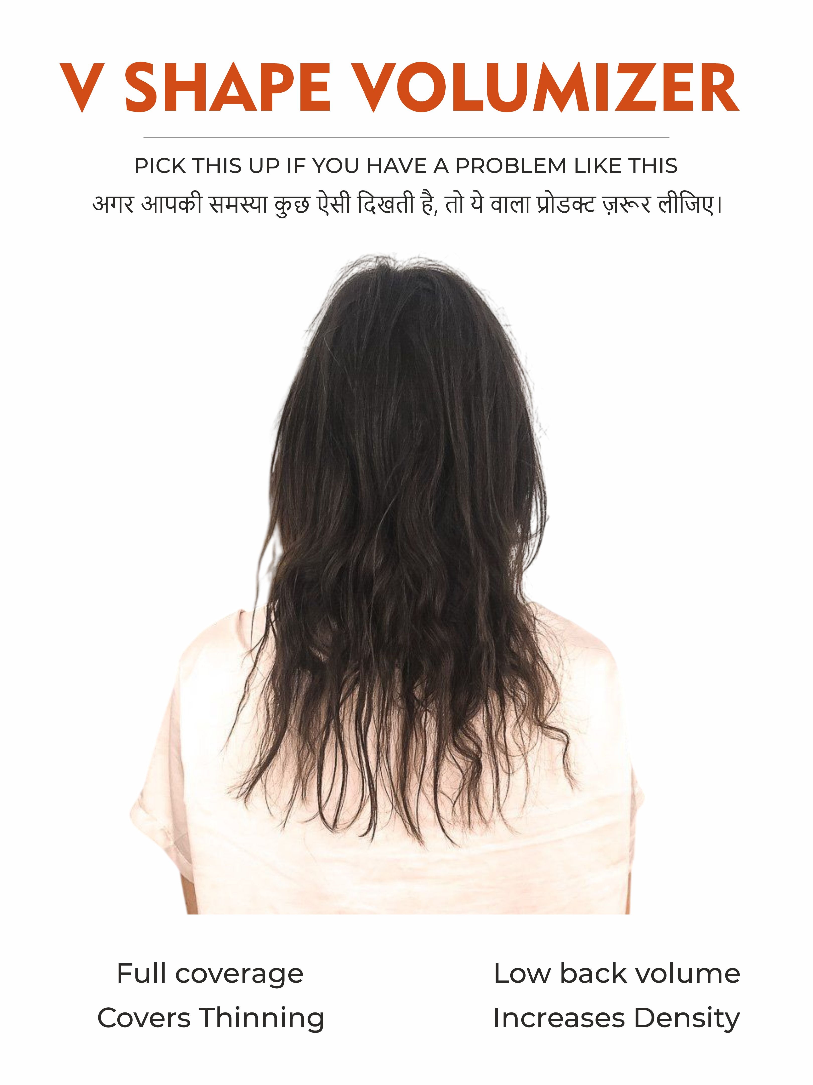 Handcrafted using premium South Indian human hair, known for its natural thickness, resilience, and luxurious finish. The V-shaped base is designed to sit perfectly along your crown lines, enhancing fullness exactly where it matters most.