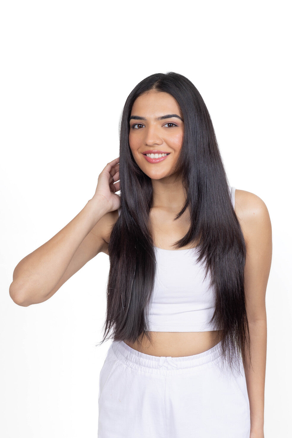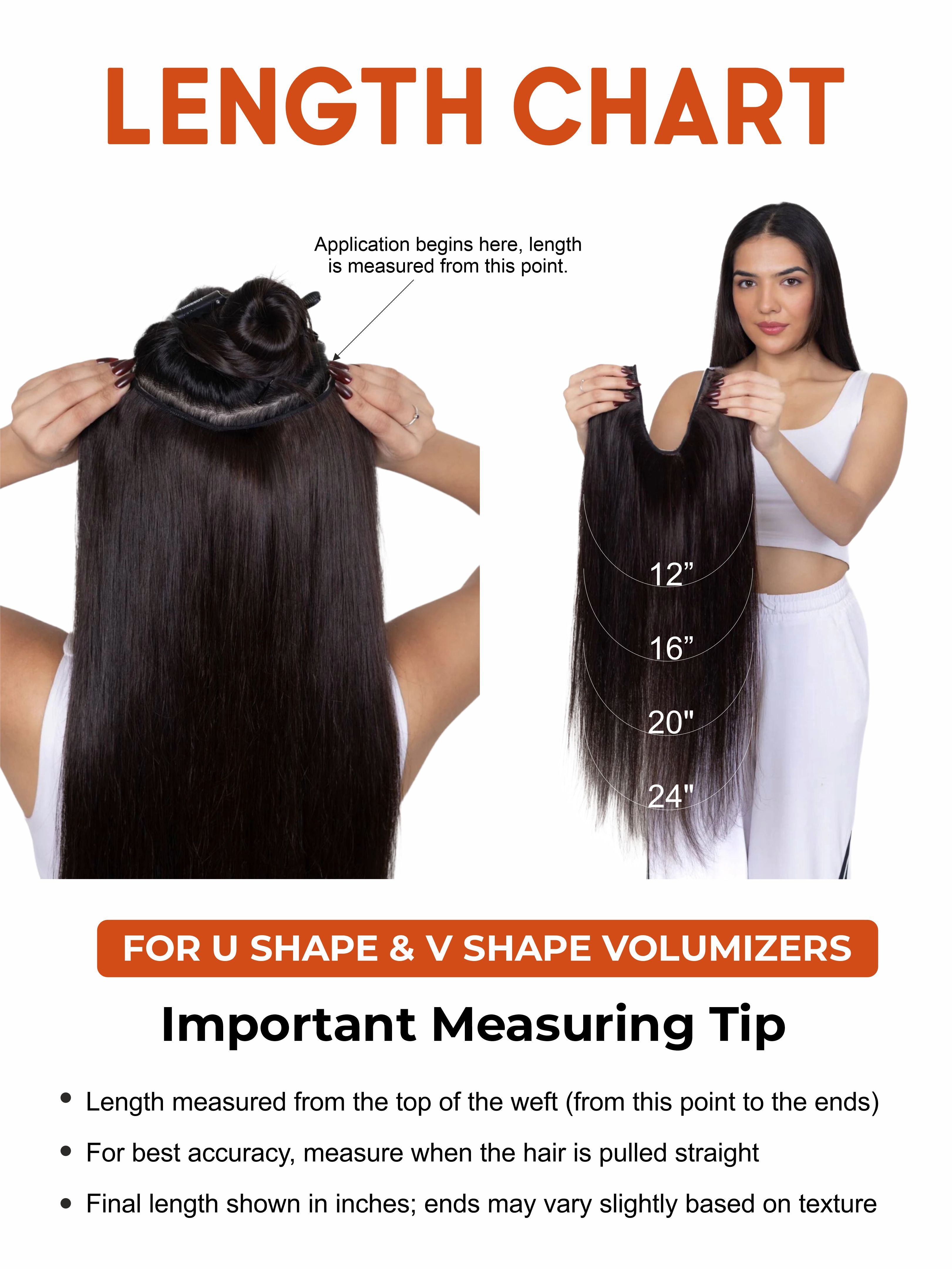 Designed for women seeking fuller, denser hair without the weight or bulk of traditional extensions. The V-Shape Volumizer adds instant volume along the crown and sides while maintaining a natural, invisible fall that blends effortlessly with your real hair.