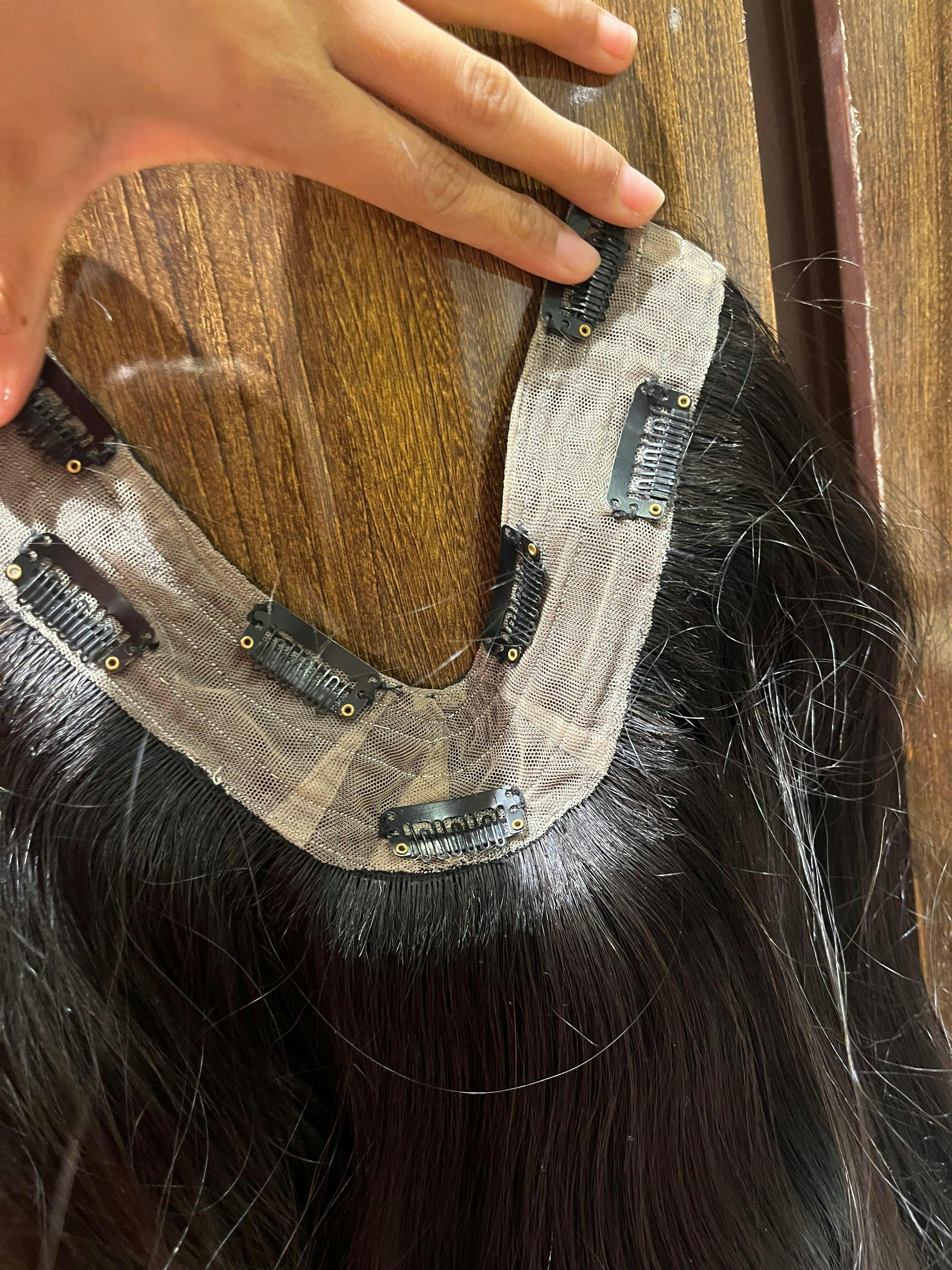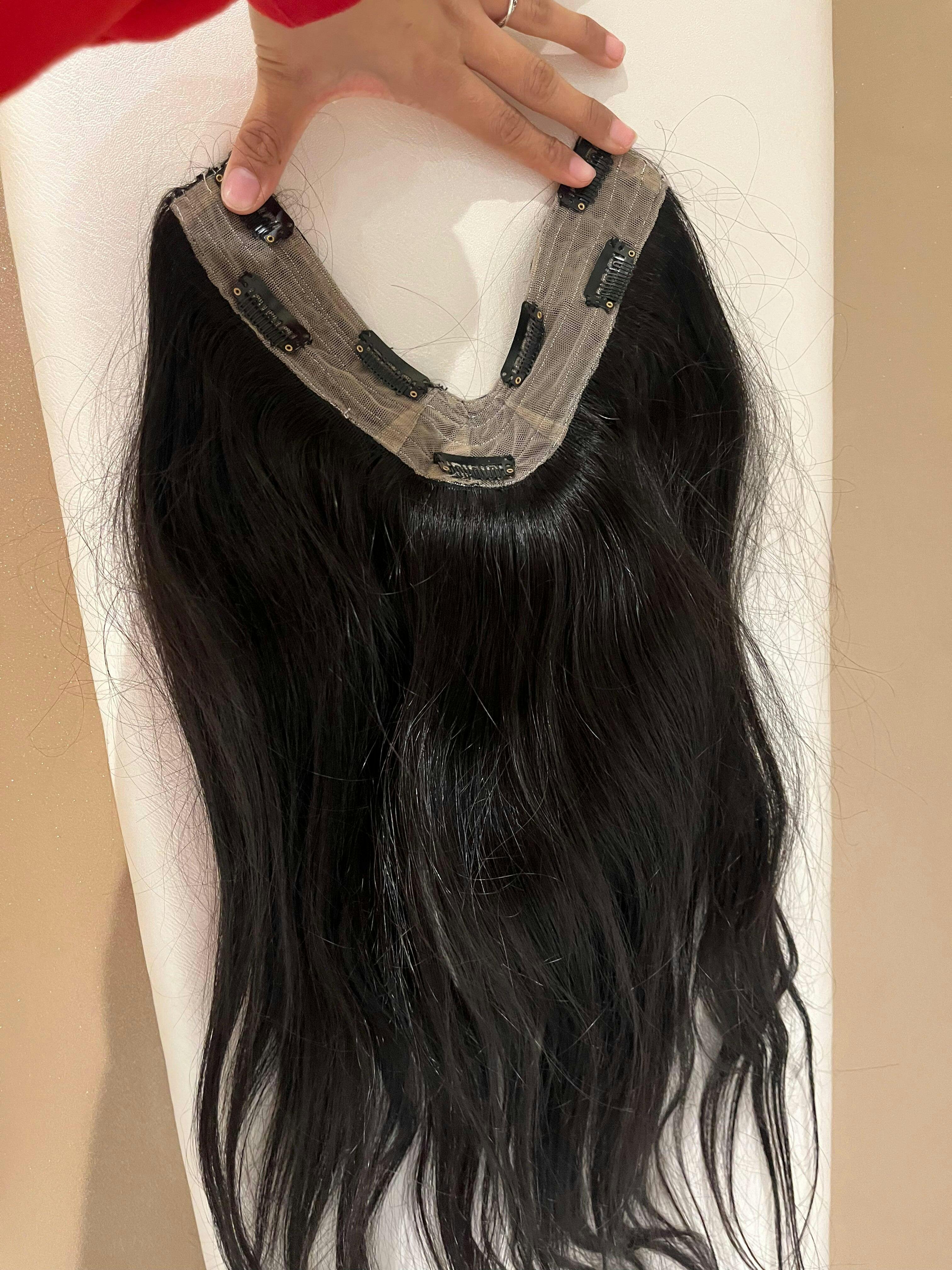 Handcrafted using premium South Indian human hair, known for its natural thickness, resilience, and luxurious finish. The V-shaped base is designed to sit perfectly along your crown lines, enhancing fullness exactly where it matters most.
