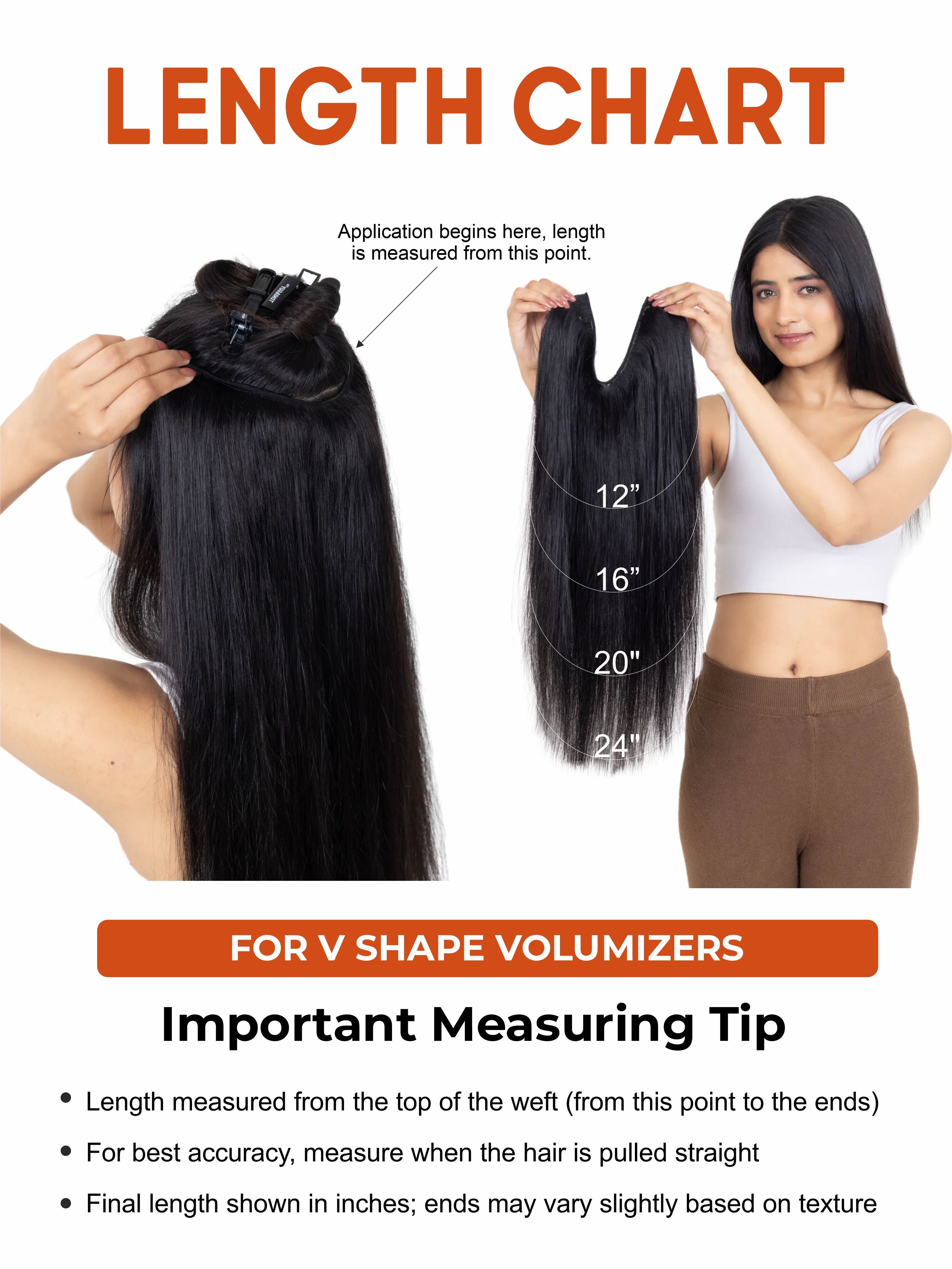 Designed for women seeking fuller, denser hair without the weight or bulk of traditional extensions. The V-Shape Volumizer adds instant volume along the crown and sides while maintaining a natural, invisible fall that blends effortlessly with your real hair.
